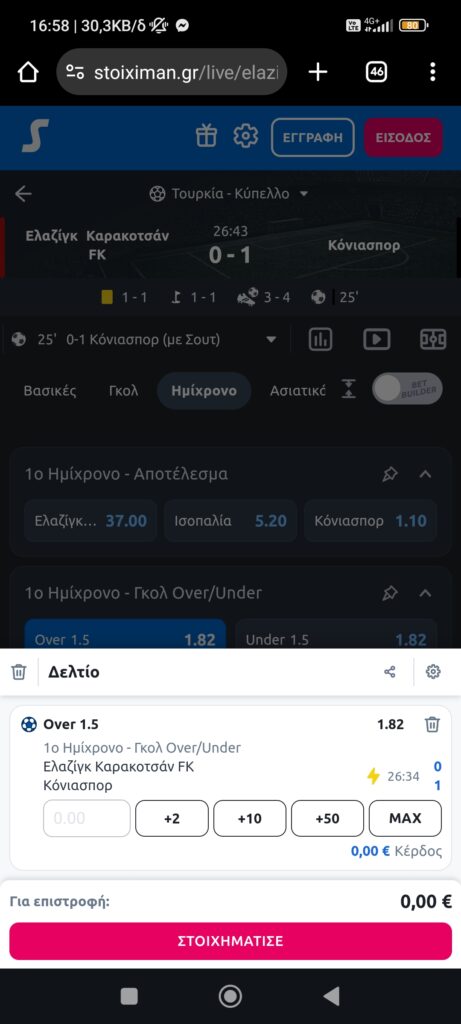 Όβερ 1,5 γκολ Α' Ημίχρονο