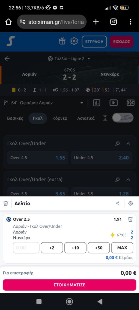 Bet Builder: Άσος από ημίχρονο + Όβερ 2,5 γκολ τελικό