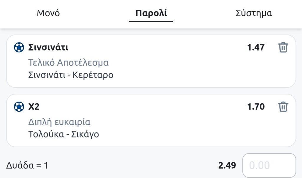 Accumulative Odds: 2.50 |