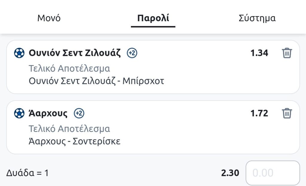 Accumulative Odds: 2.30 |