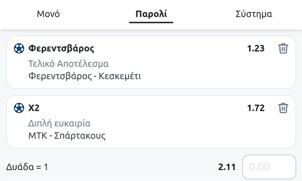 Accumulative Odds: 2.12 |
