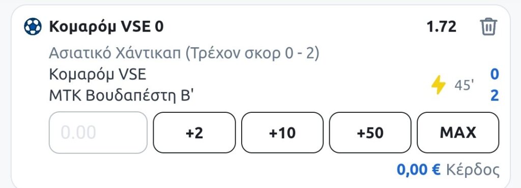 Asian handicap 0 Κομαρόμ VSE (Score 0-2)