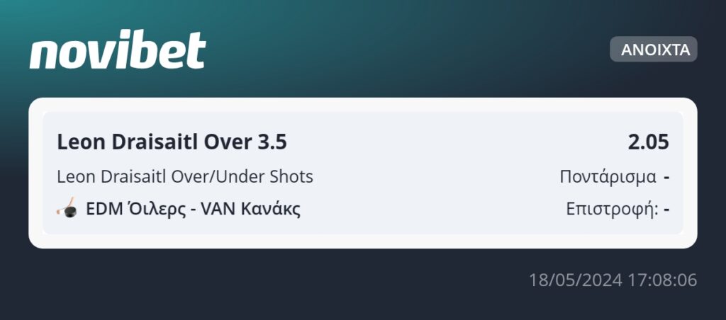 O Draisaitl στο προηγούμενο ματς έμεινε χαμηλά στα σουτ. Αλλά αυτή ήταν η 1η φορά. Το ματς είναι κομβικό. Θα πάρει πολλά σουτ.